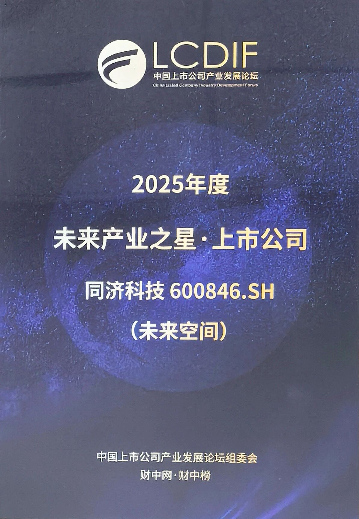 喜报 | 同济科技荣获中国上市公司产业发展论坛“未来产业之星·未来空间”奖